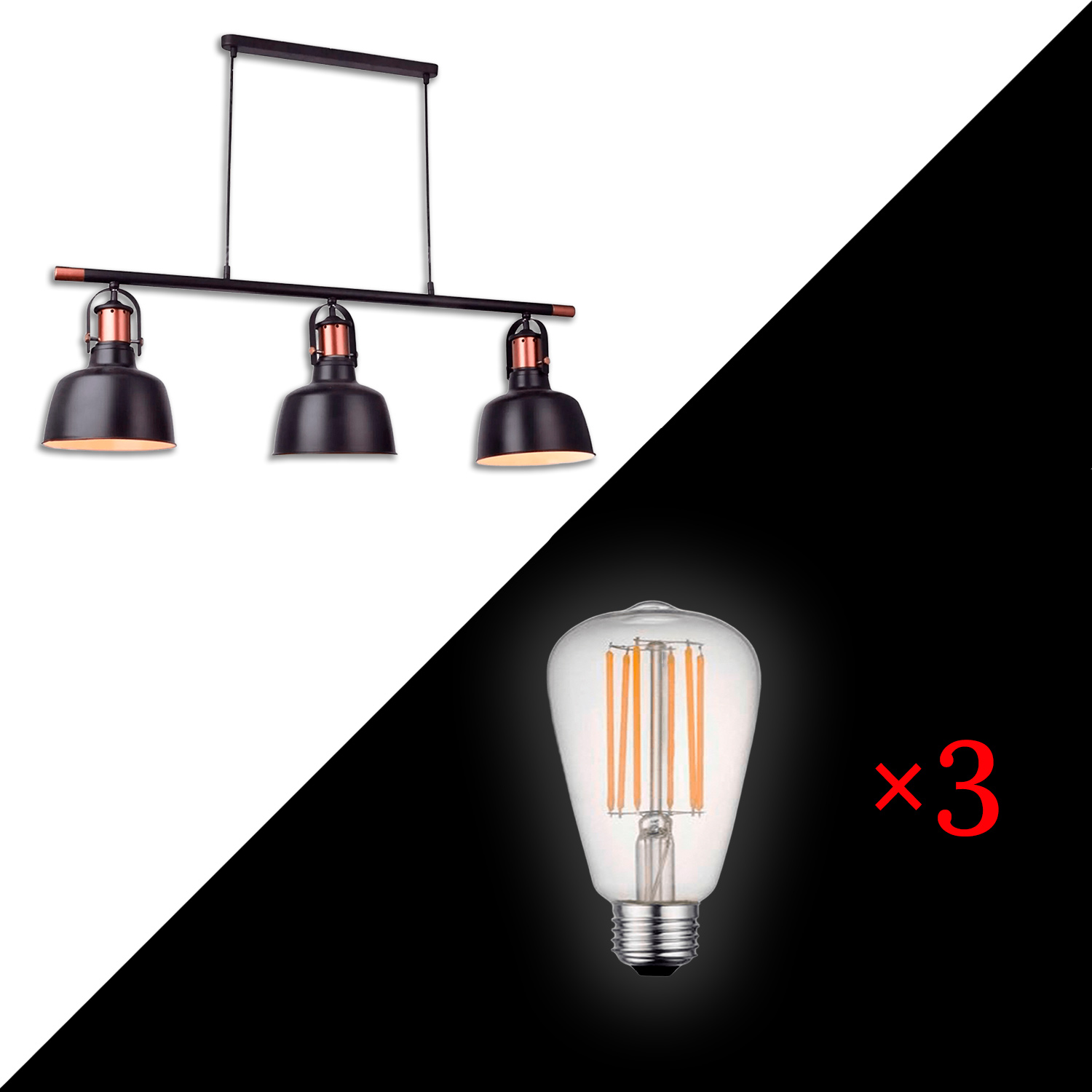 Piekaramais LED gaismeklis Indoor-014 (35W) + LED kvēlspuldze E27 ST64 8W WW