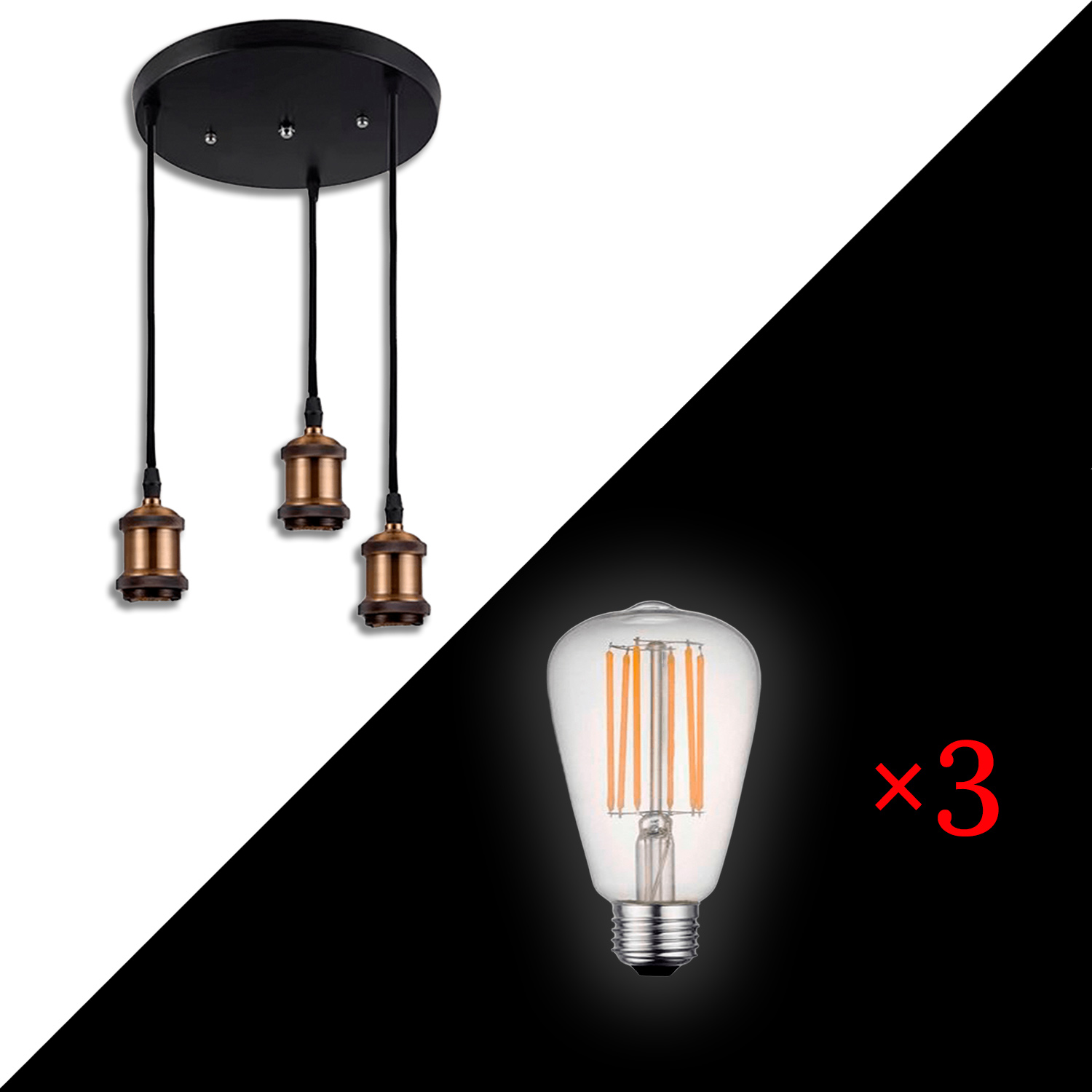 Piekaramais LED gaismeklis Indoor-131 (35W) + LED kvēlspuldze E27 ST64 8W WW