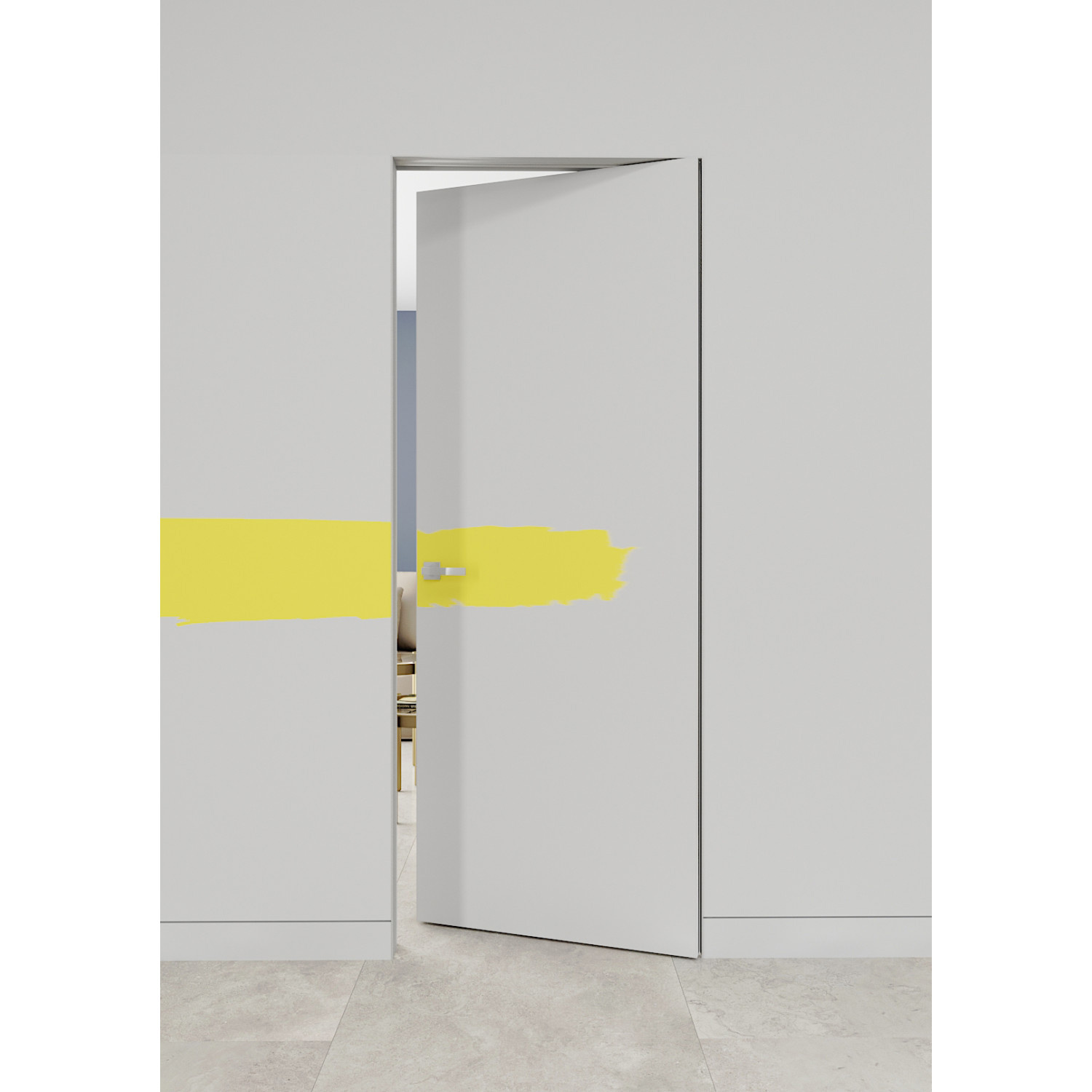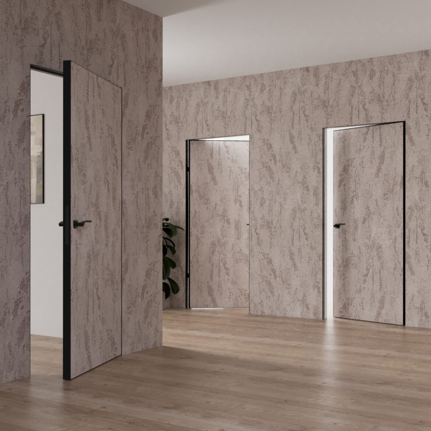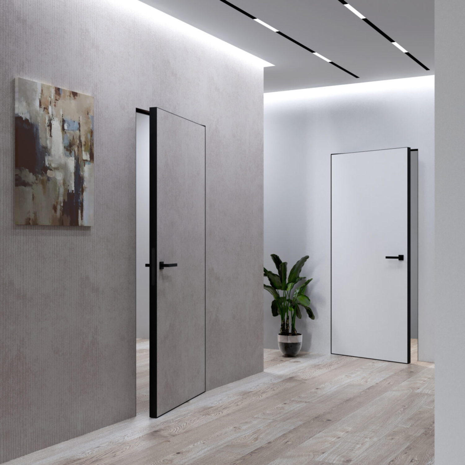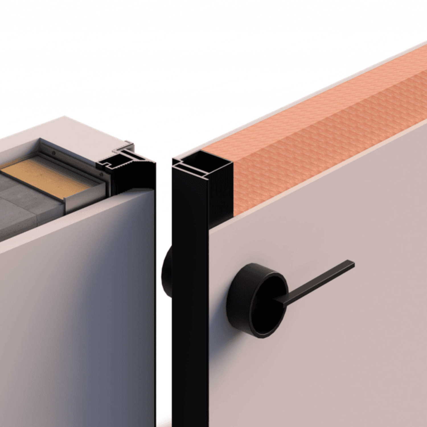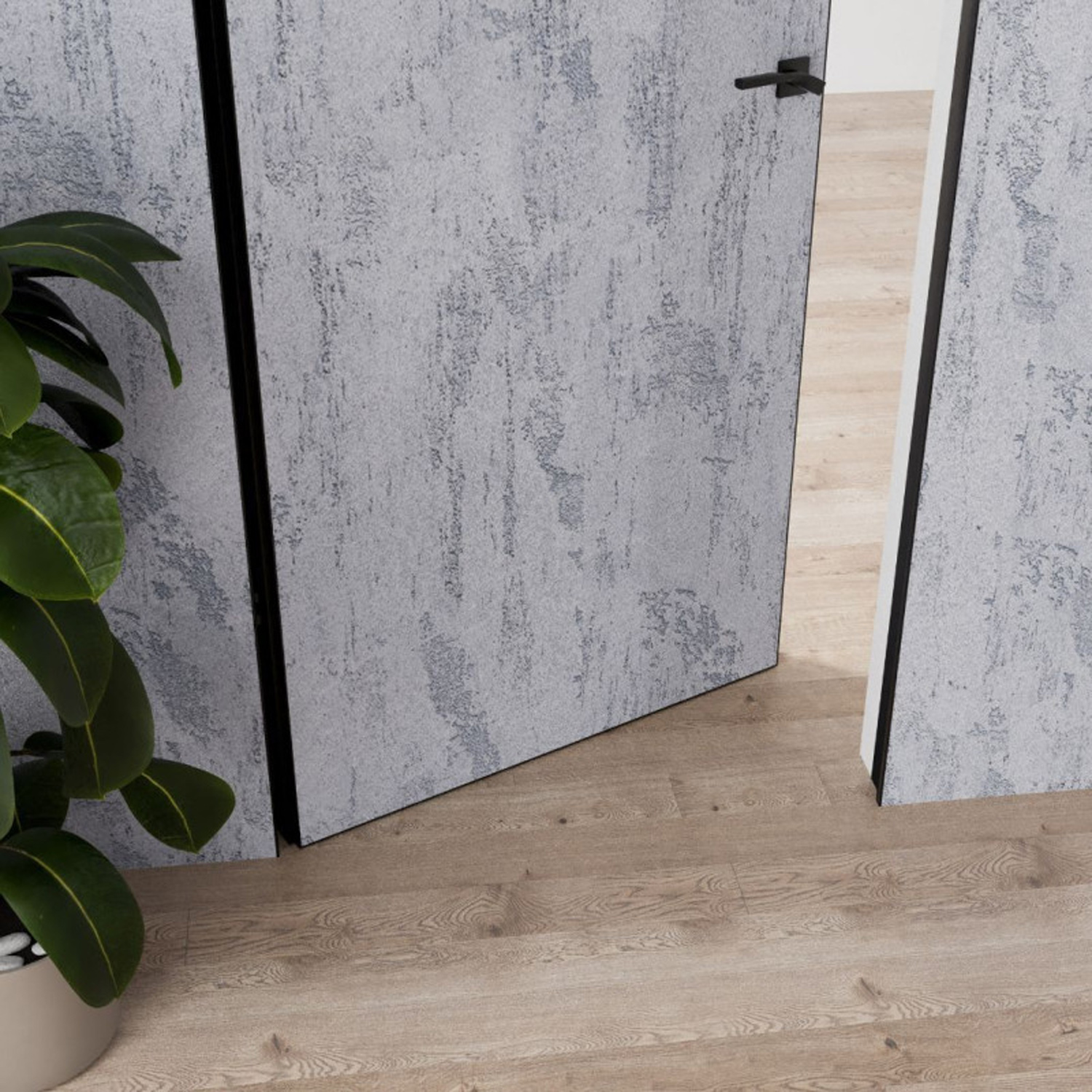 • Alumīnija slēptais durvju rāmis (melns anodēts alumīnijs)